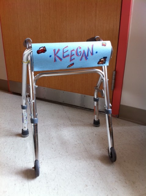 • His walking is getting better.  Keegan still doesn’t have much energy…hardly any at all, really.  But each day is a bit better.  Over the weekend and through yesterday, he was using a little kid-size walker to get around, but today we took slow laps around the floor three times successfully.