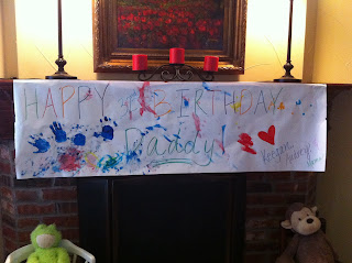 Of course, all this happened on Gray’s birthday weekend. Despite the fever and Keegan feeling pretty crummy, I think Gray had a good birthday. I hope! Keegan and Audrey had some fun painting a birthday banner for their Daddy. My mom made Gray an insane chocolate cake, and Granny made him a chocolate pie. It’s quite possible he will OD on chocolate over the next few days, since he is really the only one in the house that eats it. Ok, I guess Audrey will help a little! Ha!