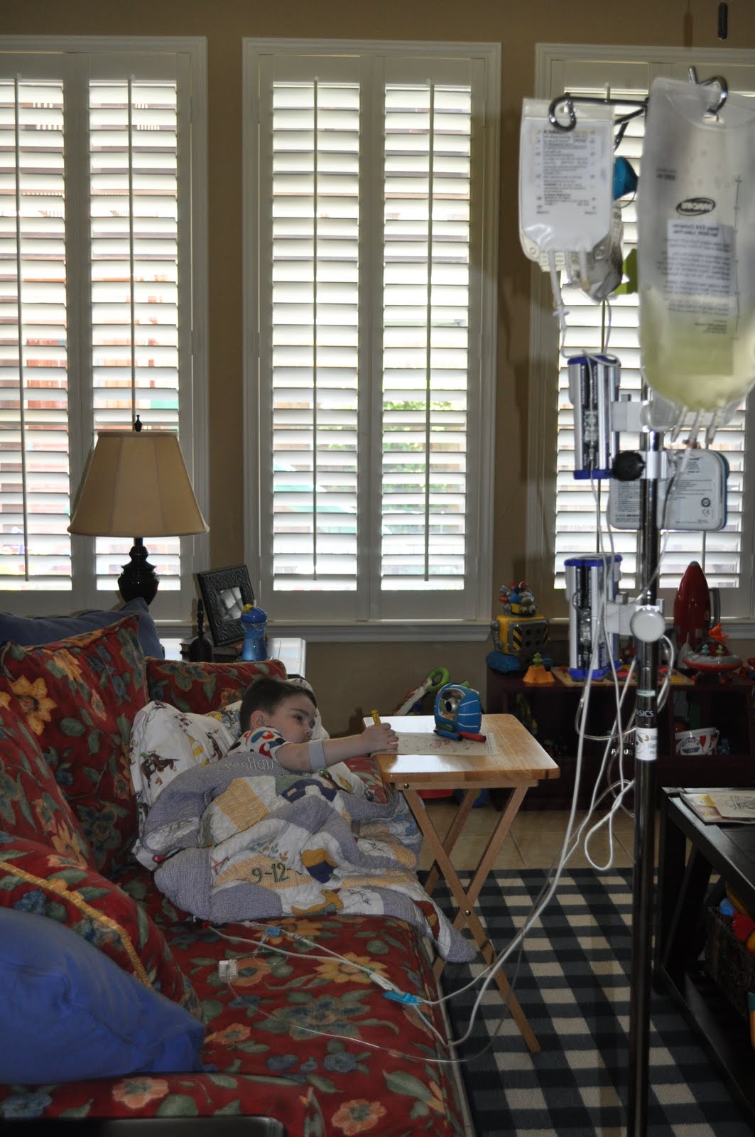 Big week ahead. Gray and I will have a conference meeting with GI tomorrow afternoon, and we were told his biopsy results should be available then. Keegan has an appointment with the immunologist on Wednesday. A lot rests on the information we are able to gather, or not, from these meetings. If either or both of them are out of ideas, it will be time to seek out another opinion for Keegan. It is very difficult to consider that right now. It’s not nearly as easy to pack up and go these days. But we will do what needs to be done to help our son. We will find a way to make it work. We would greatly appreciate your prayers for Keegan’s stability and for wisdom and clarity for the doctors, Gray, and me this week as we ponder these big decisions. Thank you, as always, for your continual support and love for Keegan and our little family.