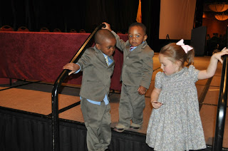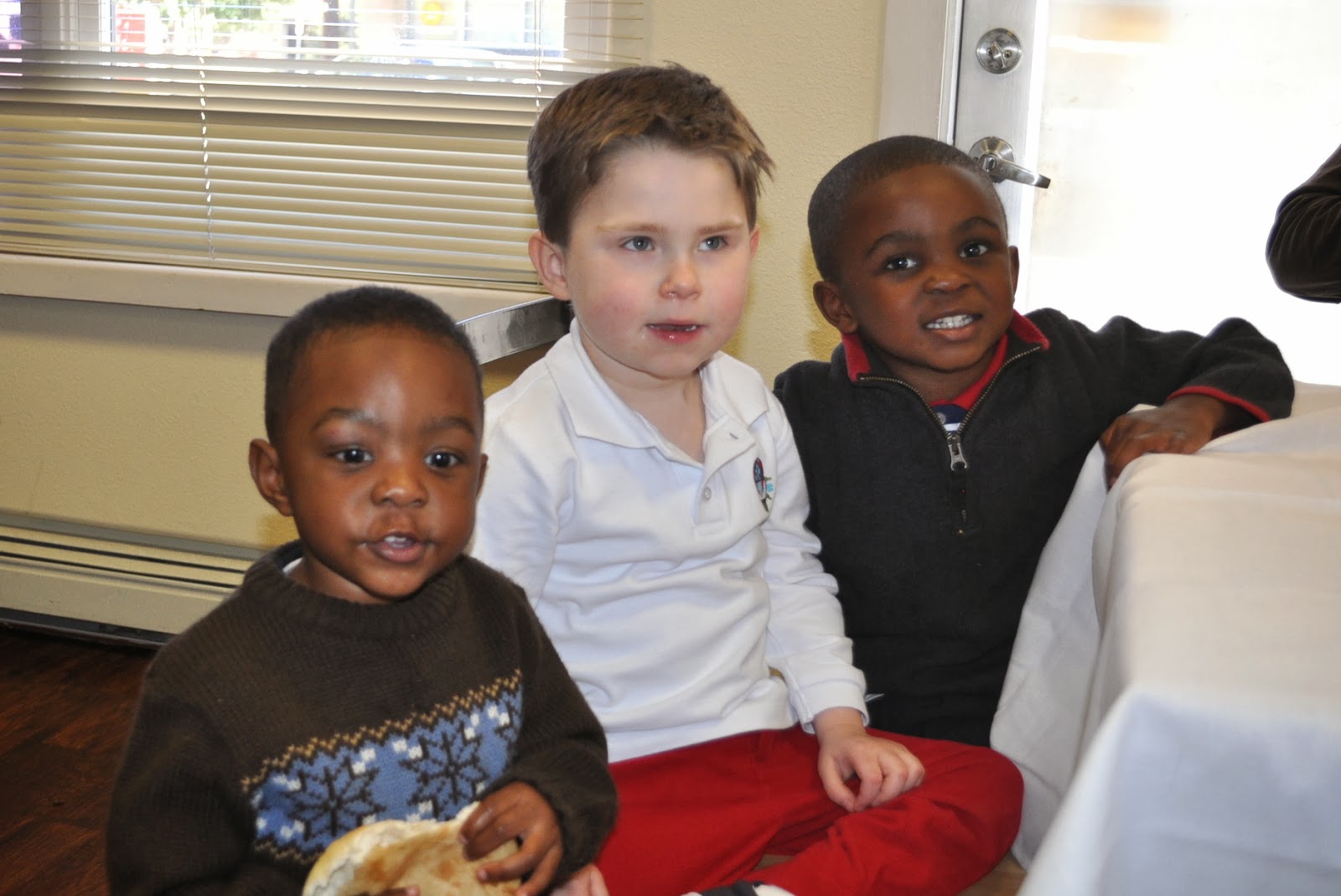 Kolton, Keegan, and Kingsley playing at the brunch.