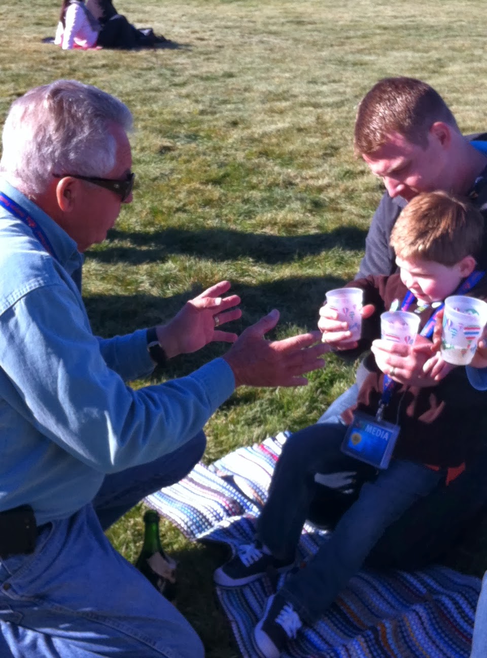 Jim reciting the Balloonist’s prayer and toasting Keegan with champagne