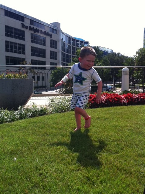 After being cooped up in his room with no energy and feeling like you-know-what for a week, Keegan took out all that pent up energy and boost to his blood counts to run around like a mad man outside for about 30 minutes this afternoon. Follow that with his first bath in a week, and by 7:15pm, you have the end result of…