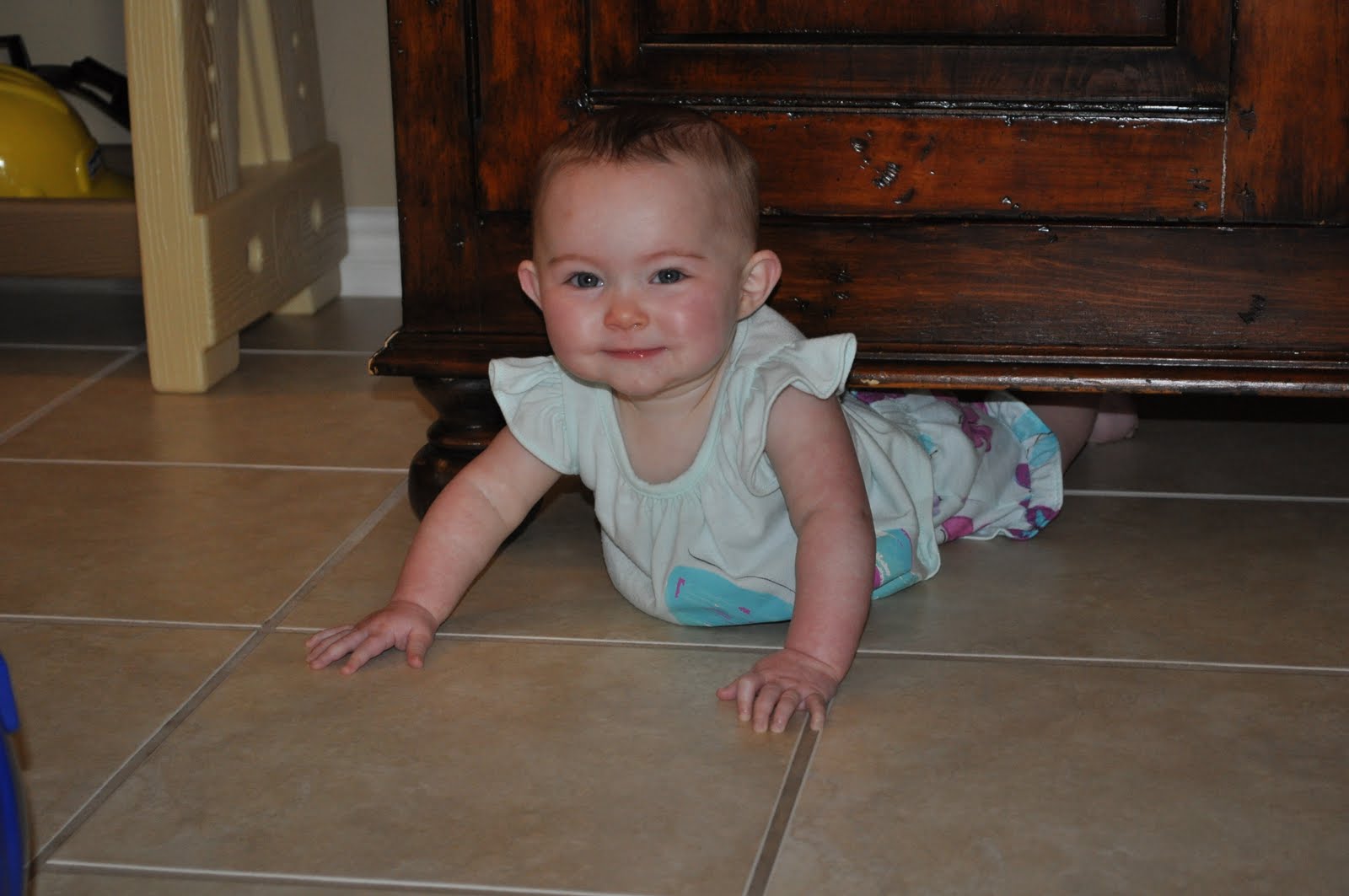 – You are officially mobile. Watch out world! Your brother had the “peg-leg” crawl. You still prefer to boot-scoot, but you’re awfully quick about it. You extend your hands out in front, then pull your bottom forward. (Video to follow soon!)