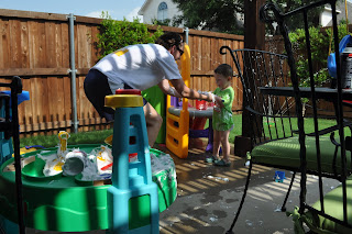 Keegan and Aunt Alex filled his water table with shaving cream and went to town!