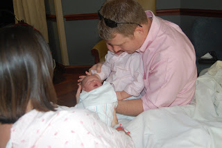 Already has Daddy wrapped around her finger! The hospital did a really fun thing and inked Audrey’s footprints on Daddy’s scrub top. What a cool keepsake!