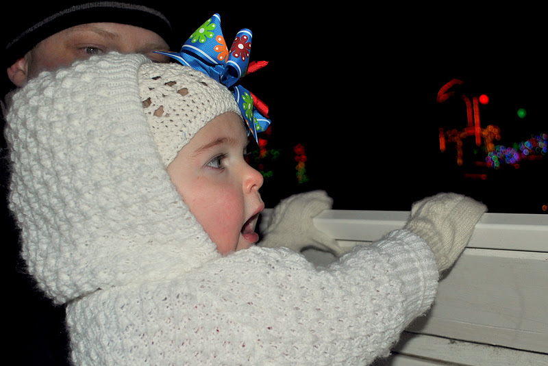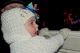 Here’s another thing that brightened our day. A carriage ride to see the lights in the neighborhood south of us. Our friends and neighbors, the Loredos, hosted us all in this evening of holiday fun. As expected, Audrey adored it. She picked a seat in Daddy’s lap right up by the horses and literally danced and jumped with joy the entire hour. We couldn’t tell if it was all excitement from the lights, the horses, or both. But oh boy, am I excited that horseback-riding may be in her future!