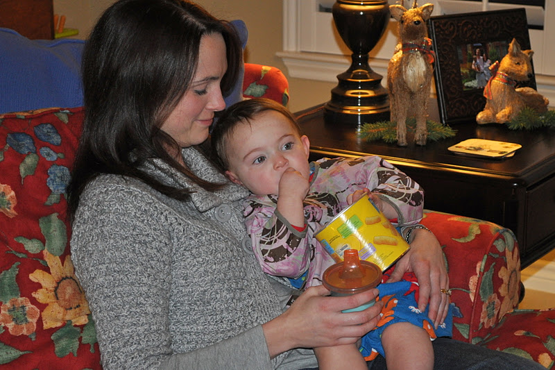 The tantrum got to be so much that the only thing that calmed her down was some veggie puffs and the Grinch on tv. Not my best dinner moment as a mom. Ultimately, she did eat some PB&J though, so I didn’t feel SO bad! Even if I did have to hand-feed her the sandwich and hold her cup for her while she drank. Has me wrapped around her finger much? Yeah.