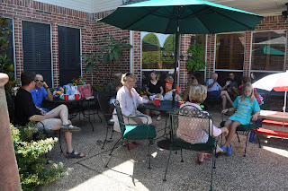 My dad’s cousin, Kristen, and her husband, Keith, and children live in Liberia in Africa.  Keith is a dentist in a clinic he helped found there.  They came home this summer for vacation for the first time in two years.  Each time they come home, my dad’s side of the family hosts a little reunion to catch up.  This time, my parents had it at their house.  It was hot but so much fun to see everyone!  We were so busy talking that we didn’t end up with many pictures, but here’s the few we managed to snap.