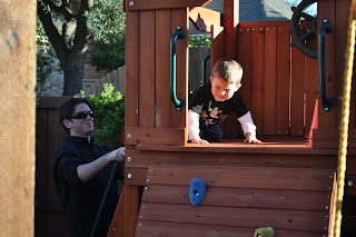Keegan’s godfather, Teague, came into town for most of the holiday weekend. We were so happy to see him again. Keegan’s grown quite a bit since the last time Teague was able to break away from work! Keegan had fun showing Teague his fort and all his toys.