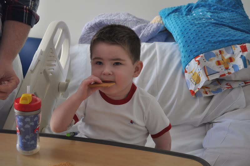 Keegan’s fever broke early in the morning today. He was amiable but refusing to leave bed for most of the day. All in all though, it ended up being a pretty happy Friday. We had our first big meeting with GI today. As always, Dr. Kamin is tackling things head-on with Keegan once again. They are still reviewing his history, his old procedures and labs, and reviewing with us to ensure they have everything right as to how Keegan has been doing from an intestinal standpoint. So, they haven’t come up with an overarching plan or any new possible diagnoses just yet. Dr. K was trying to collect all the data before jumping to any conclusions. In order to do that, he felt we needed to at least jump on the opportunity of no fever over the weekend and try to challenge Keegan’s gut a little. The fevers throw a big wrench into the picture. Since we are all in general agreement that the fevers are indicative of an immune response/inflammation process, it is no surprise that they do affect his GI system. They probably would in a normal person, even more so with a not-so-normal one.