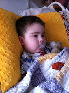 The great “oral tylenol + ibuprofen” experiment was an epic fail last night. Other than the night after Audrey’s birthday party, this was his absolute worst fever so far. As I posted yesterday, Keegan’s fever simply laughed at the oral tylenol. It temporarily bowed to the ibuprofen, only to come roaring back about two hours later bigger and badder. He climbed to 103.9, probably higher, but we were too busy trying to control his horrible nausea and vomiting to continue to check his temperature. We know that Keegan’s body restricts blood flow to his stomach during the fever episodes, causing retching and vomiting. Ibuprofen can also cause stomach upset. The combination of the two probably put him over the top. I don’t know if it is the ibuprofen or the fever or both for sure because that was literally the first time in his life to ever receive ibuprofen. At any rate, we finally were able to get him an IV tylenol dose and zofran around 3am, and he was finally asleep again just before 6am.