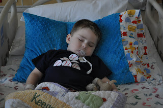Keegan was admitted to the hospital again last night. After the reaccess of his port at midnight on Wednesday, it continued to bleed and have discharge of some kind into the dressing. He woke up Sunday morning scratching all around the dressing and at the needle site. He was otherwise very lethargic all day, when the several days prior he had actually shown improved energy. When we pulled the dressing and needle out Sunday afternoon, the skin around the port was extremely swollen and a disgusting shade of bright yellow! I will spare you the pictures, but it was quite obvious TPN had at least been sitting on his skin, more than likely infiltrated into his chest too.