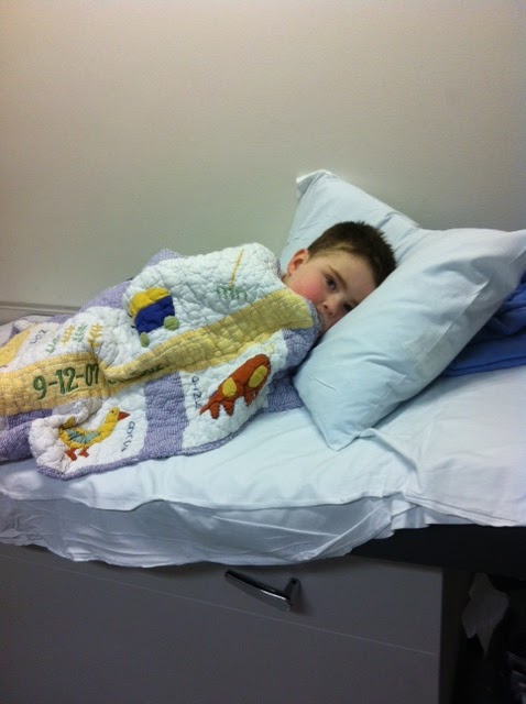 Keegan had his glo-fil today.  This test requires injecting a radioactive dye through his port, drawing labs at different intervals throughout the day, and then measuring the samples to see how well Keegan’s kidneys clear the dye.  The end result is a percentage of remaining kidney function.  The test went well with no hiccups.  Last year, we were dealing with his port that was unknowingly embedded in an artery, which clotted off several times during the day.  This time, the only hiccup was Keegan still not feeling well.  That will, unfortunately, be something we will have to deal with for awhile, I think.  He is very tired, is having terrible tummy pain, and still doesn’t want to walk.  We’re just praying he shows bits of improvement every day in his attitude, energy, and labs on Friday too.