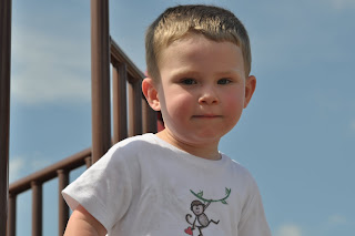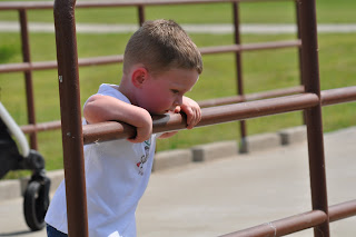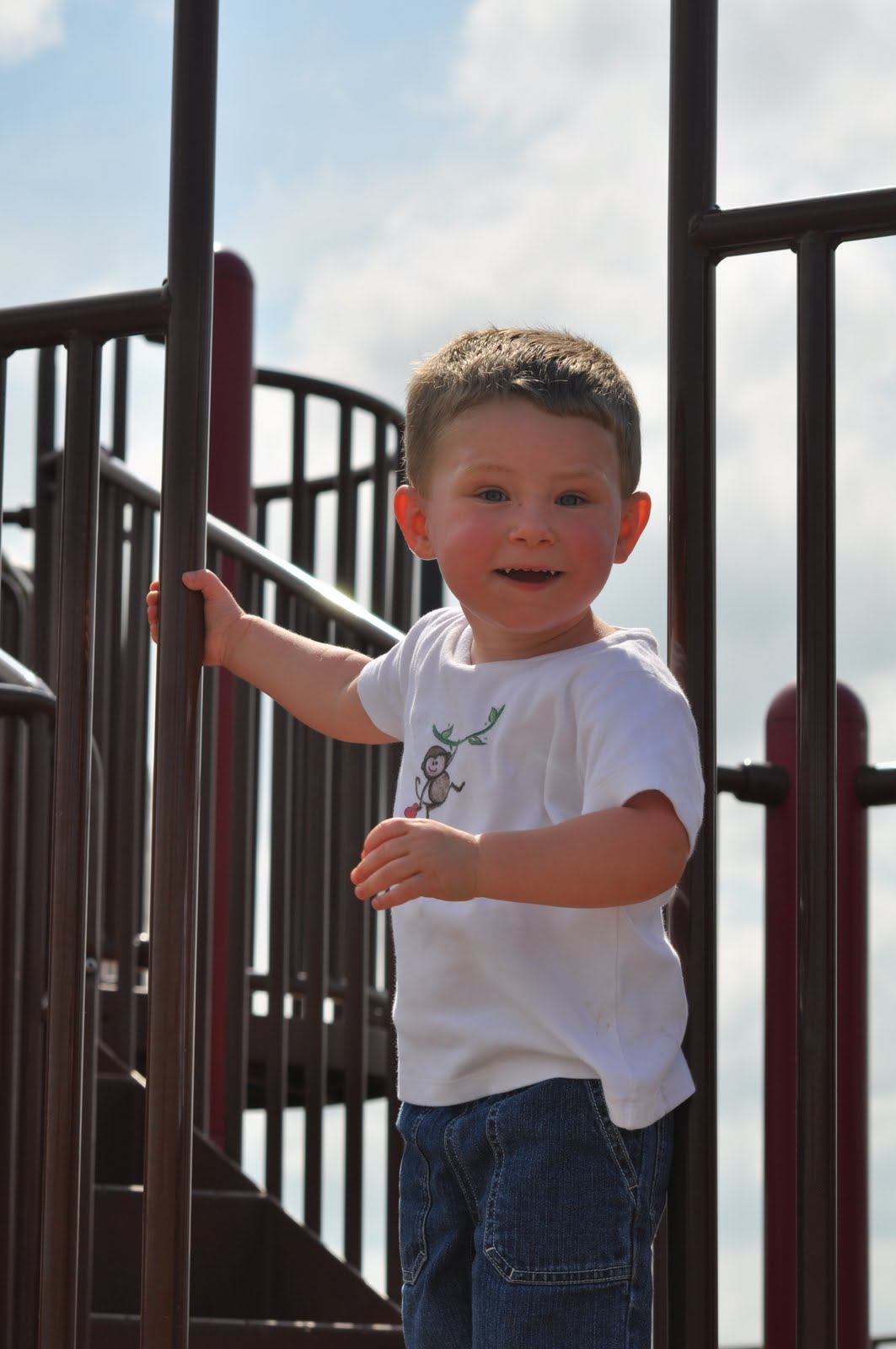 By Saturday afternoon, we were ready to get out of the house.  We loaded up the car and went to a new park in Frisco to explore with Keegan.  It had a great playground with lots of slides and ramps for Keegan, a walking trail, and a creek.  And best of all, we had it all to ourselves!