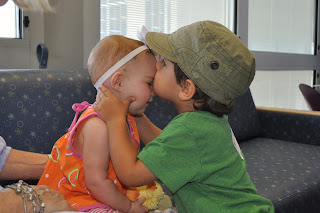 Our friend, Brady, came to visit in the hospital the other week. Unfortunately, Keegan had to spend a little extra time in the PACU that day coming out of his colonoscopy and missed him. Audrey got some pretty good kisses and hugs from Brady and gave some too! Heehee!