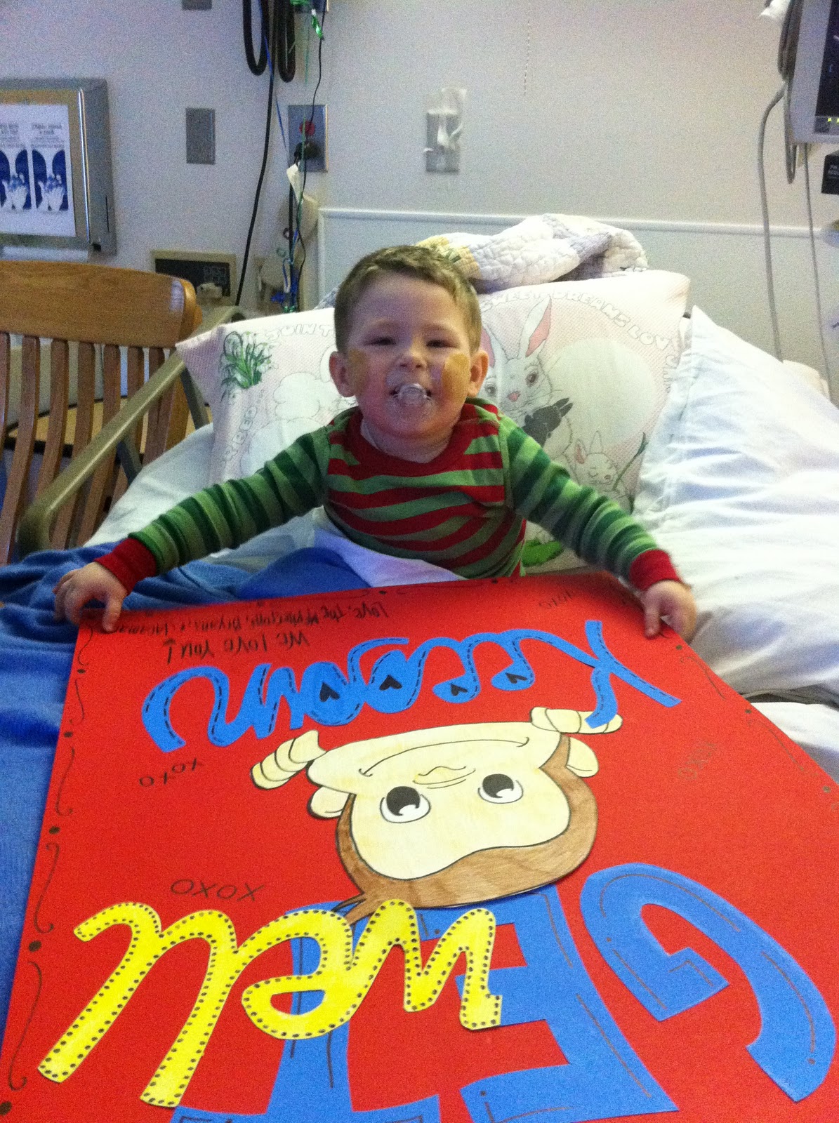 I have more photos to share today than info. Keegan has been a bit more lethargic today, but we kinda expected that. He became quite fluid overloaded in the last day and a half. Right after I posted last night’s update, he had to go back on oxygen for overnight. He tends to have more problems overnight now. It’s not completely surprising. You tend to take less breaths at night, and his are more shallow due to the swelling. He has not wanted to sit up on his own much today and really fought getting out of the room and taking a few steps outside.