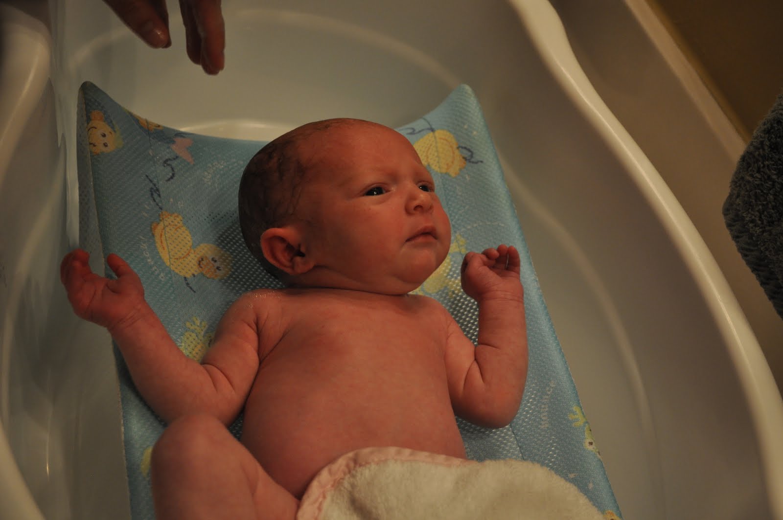 Audrey had her first bath at home on Saturday. She didn’t mind it too much!