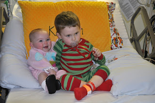 Keegan had a lovely visit from Gage and Ainsley this morning, as well as Big Daddy, Audrey, Oma, and Pops. Unfortunately, he was very tired and irritable, but it was good to see them anyway. We were able to go on another walk up to the cardiac floor to see the Christmas lights from higher up and of course, chat with some of Keegan’s “girlfriends.” He seemed to be in a better mood by this afternoon. We will post more tomorrow as we know it. Thank you so much for your continued prayers.