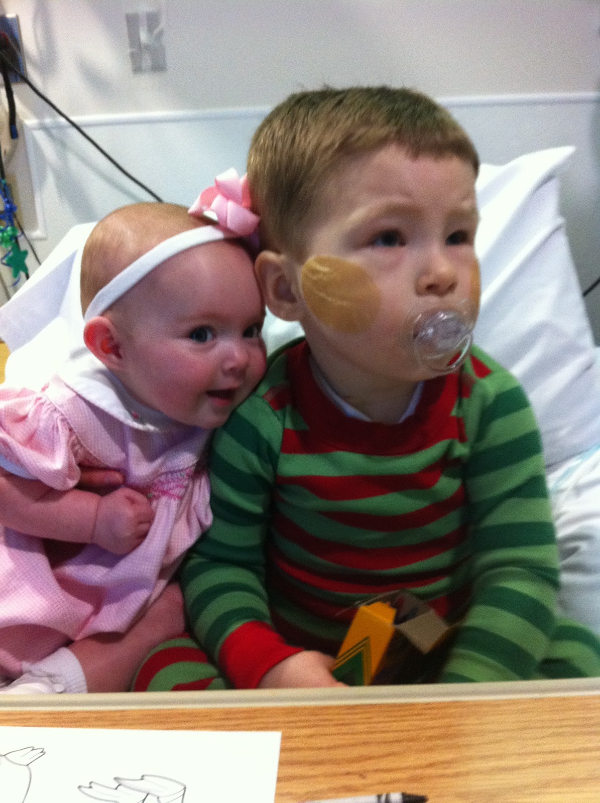 Audrey came up to visit today.  Oh, how she missed her big brother!  She was so happy to sit on the bed and play with him this afternoon (although he tried to ignore her as best as he could).  I was able to rock her for a brief nap before my mom had to take her home.  It felt so good to snuggle up with her, but it almost made saying goodbye harder.  She is a trooper, and I know she’s having a grand ol’ time with her grandparents.  I feel like we’re all surviving this inpatient stay fairly well while being separated.  It should be interesting to see how it goes as she gets older.