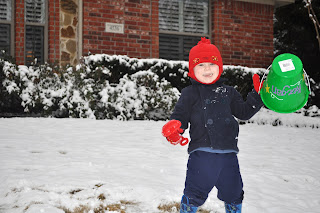 When you live in Texas, you have to be a bit creative in finding a sled.  Thankfully, our neighbor, Brian, passed by and filmed us “sledding”, since Keegan wasn’t quite getting the hang of it alone…