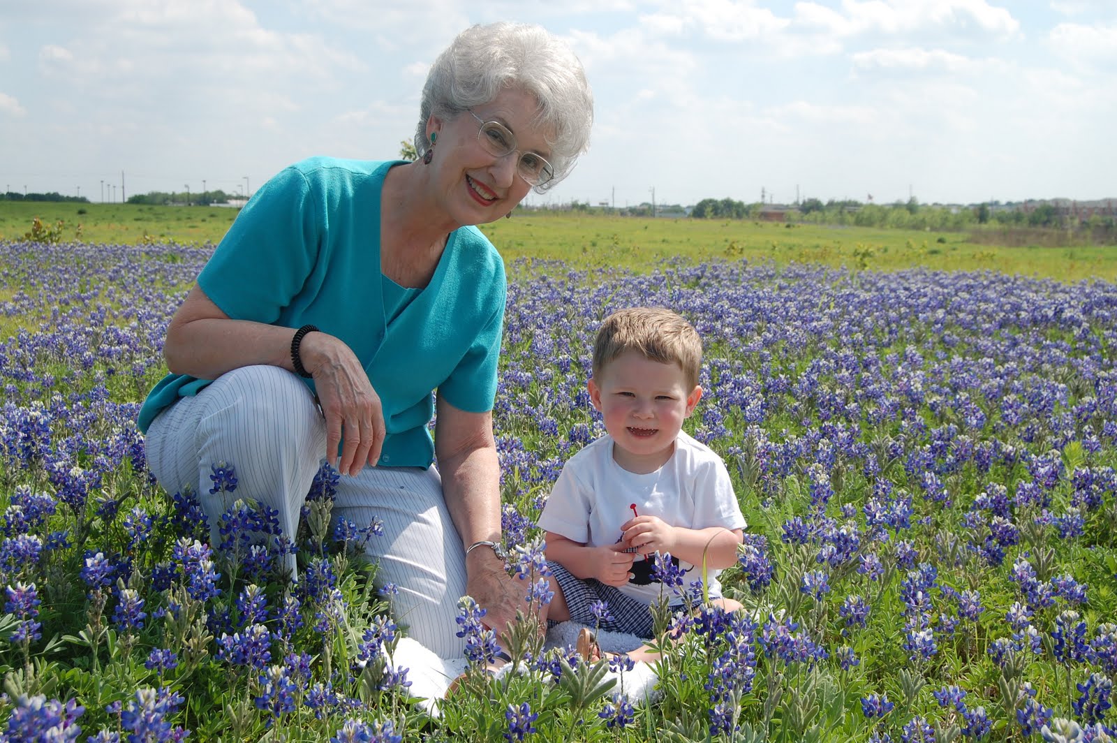 Sitting in the bluebonnets while visiting Great-Granny…