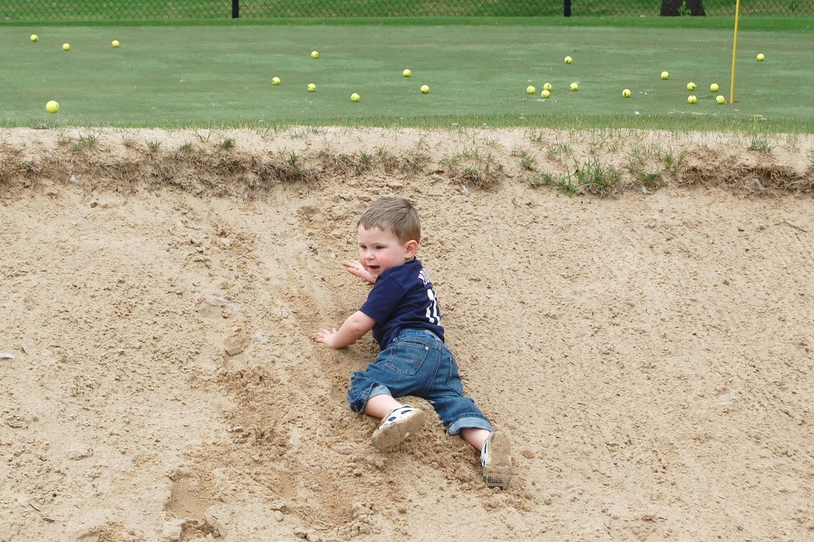 Learning how to rake the sand trap after your swing…